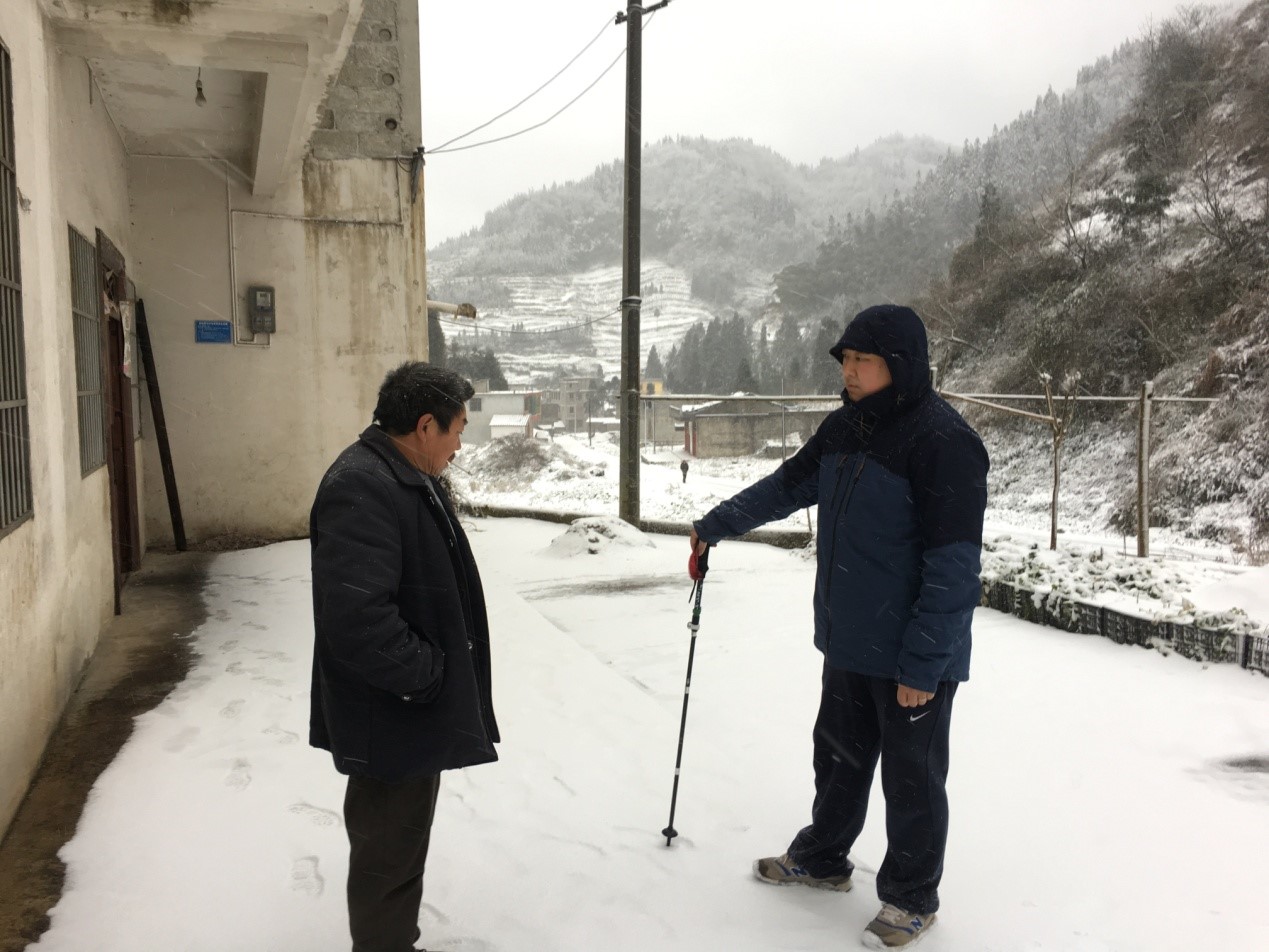 1月10日下午,我校驻村工作队员受学院委托,在漫天飞雪中,踏着结冰的路面去走访白孝伦等几位老人。