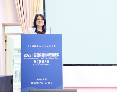 党委书记缪军发表致辞。他回顾学校60余载办学历程时表示,云南体育运动职业技术学院作为西南地区最早成立的体育类高职院校,从培养奥运冠军、世界冠军到服务国家体育战略,我们始终坚守为体育教育事业培育栋梁之材的初心。本次大赛不仅是技能比拼的舞台,更是全国体育职业院校协同创新、共谋发展的平台。他承诺,学校将全力做好赛事服务保障,确保选手在“技术技能、文化文明、友谊友情”三个维度实现突破。