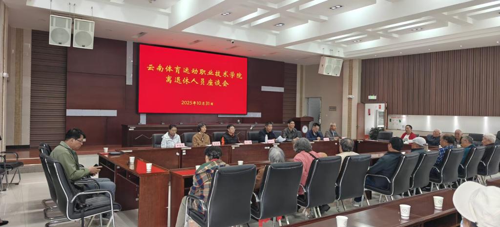 为深切感谢离退休人员为学校建设与发展所做出的卓越贡献,10月31日上午,云南体育运动职业技术学院在云帆楼第二报告厅召开2025年离退休人员重阳节座谈会。离退休人员应邀回到校园,共忆往昔,共话发展。学校校长代红兵、副校长董利民出席会议,学校离退休人员代表及相关部门负责人参加座谈会。