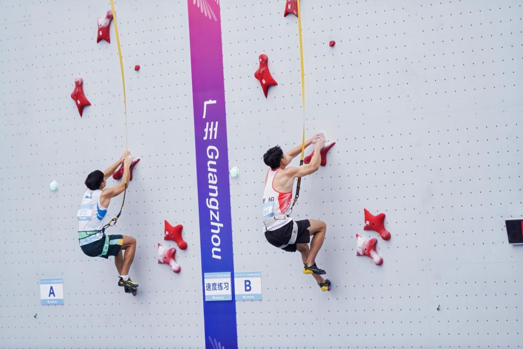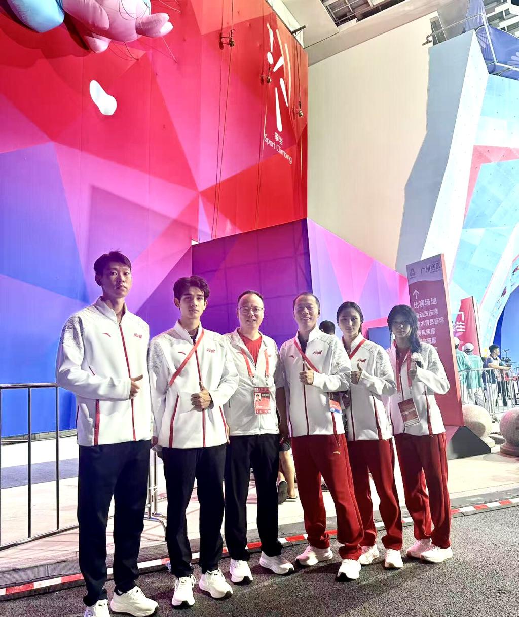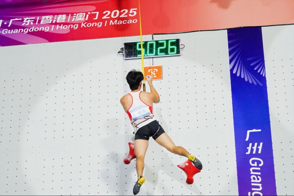 2025年11月14日,第十五届全国运动会攀岩项目男女速度决赛在广州大学城体育中心攀岩场开赛。云南体育运动职业技术学院与昆明海埂体育训练基地共同组建的云南省攀岩队表现优异,运动员杨杰、李旭分别获男子个人速度赛第五名、第十名,运动员汪生艳、白玉美分别获女子组第十一名、第十三名。他们在15米高的标准化倾斜岩壁上以闪电般的速度与顽强斗志,展现了云南攀岩队的硬核实力与青春风采。