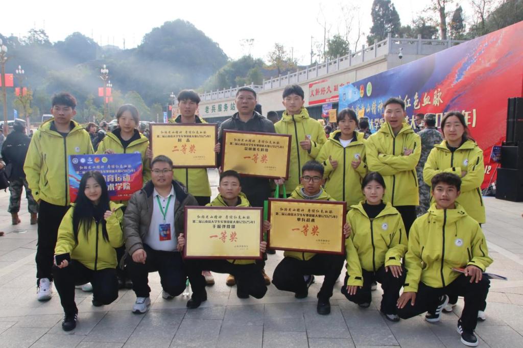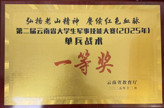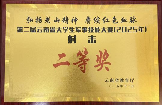 2025年12月9日至13日,以“弘扬老山精神 赓续红色血脉”为主题的2025年云南省大学生军事技能大赛在文山州麻栗坡县落下帷幕。我校代表队在此次赛事中表现优异,以585分(总分600分)的优异成绩,位列全省高校第一,斩获总团体(专科组)一等奖,单兵战术一等奖、手榴弹投掷一等奖、射击二等奖。