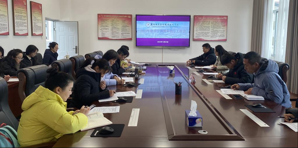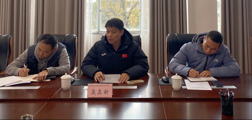 2025年12月25日,云南体育运动职业技术学院2025年秋季学期期末教学工作会在云帆楼第四会议室召开。学校党委委员、副校长聂真新出席会议,学校教学质量督导委员会全体成员、各二级学院院长、分管教学副院长、教学秘书及教务处相关工作人员参会。会议由教务处副处长(主持工作)张卫峰主持。