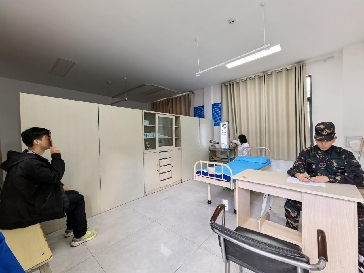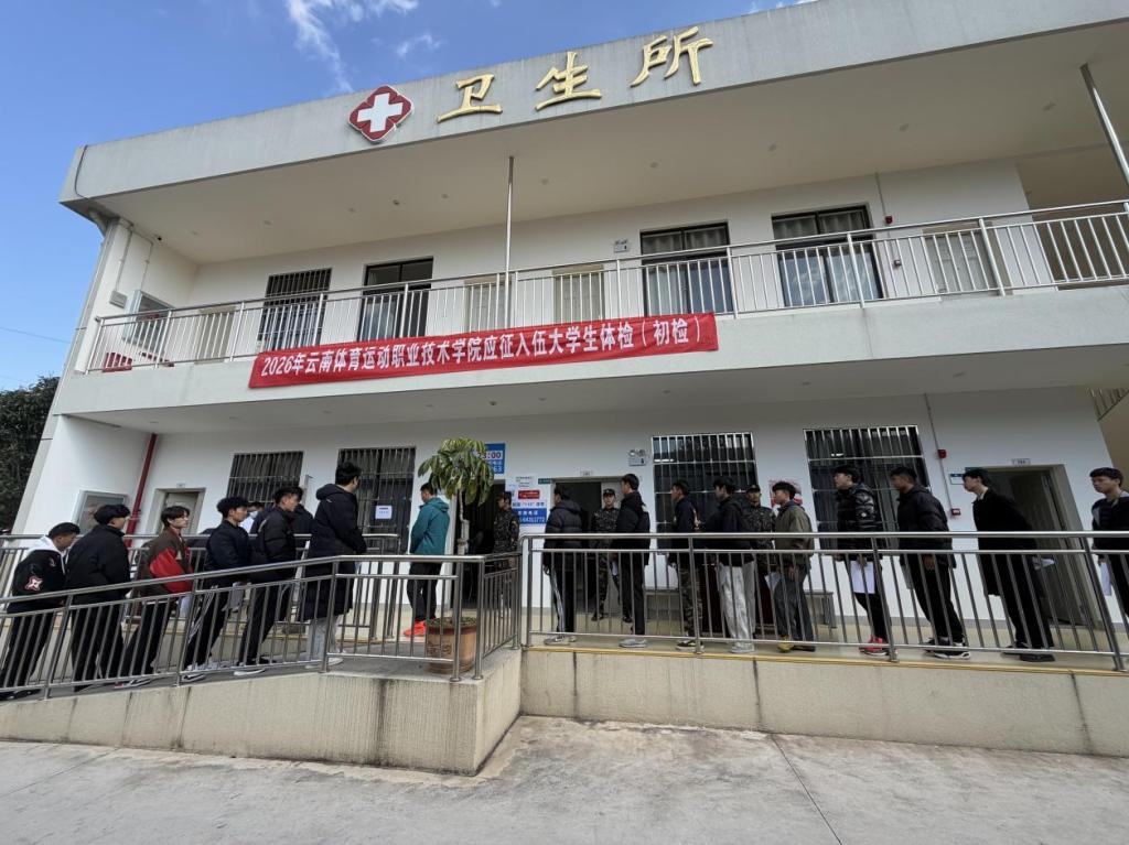 2025年12月26日,云南体育运动职业技术学院2026年春季征兵工作全面展开,应征入伍大学生体检(初检)工作在学校医务室有序进行。本次初检面向全体有应征意向的学生,旨在为后续征兵选拔工作奠定基础。