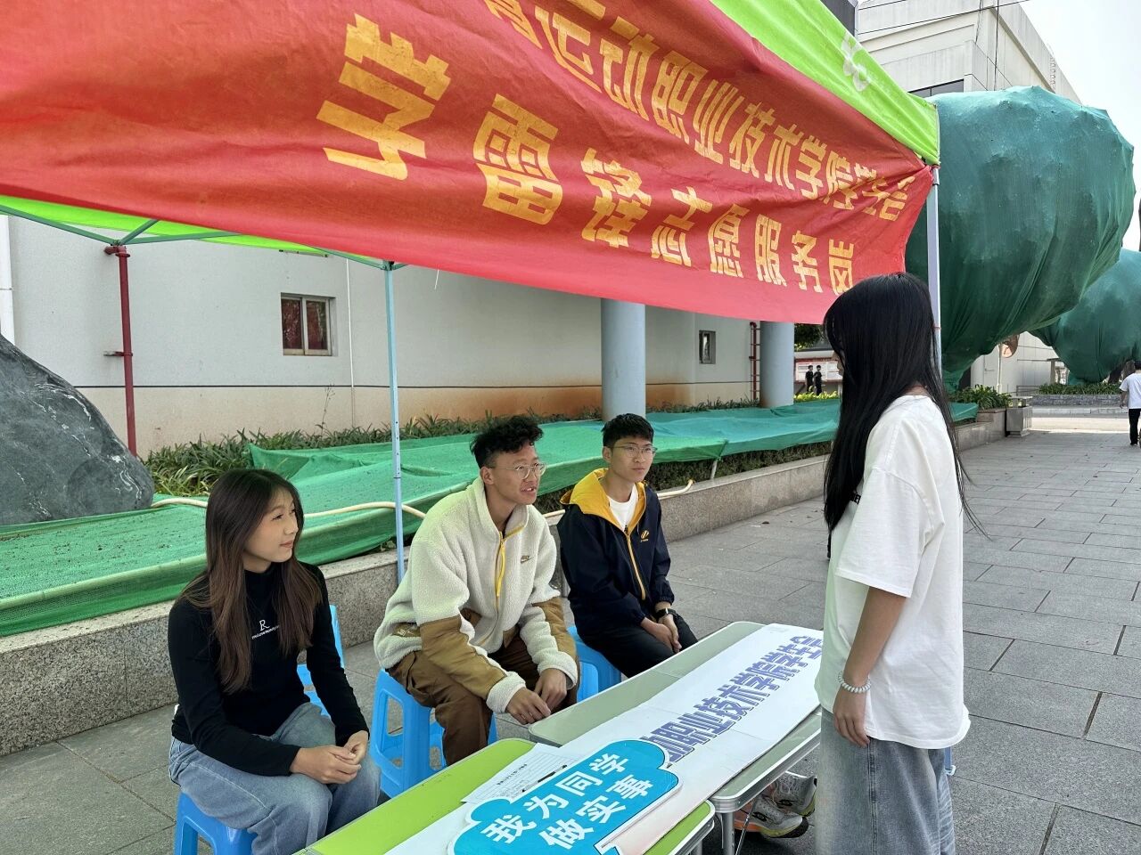 活动现场,学生会的同学们化身校园里的“活雷锋”,以饱满的热情在岗执勤,耐心为前来咨询的同学答疑解惑、排忧解难,从校园生活咨询到学业问题解答,从权益维护指引到志愿服务对接,用点滴行动践行“我为同学做实事”的初心,让雷锋精神在校园里落地生根、见行见效。平凡的岗位,不平凡的坚守,同学们的一举一动,都是对雷锋无私奉献、助人为乐精神最生动的诠释。