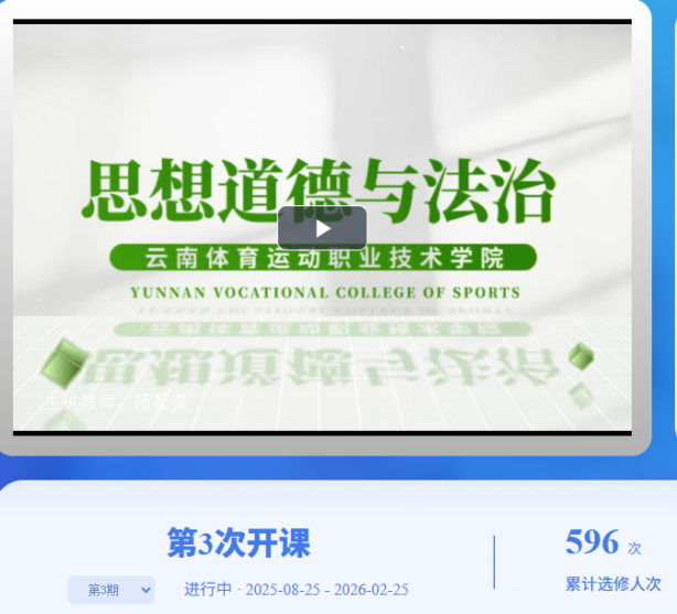 课程体系稳步升级,广度与深度并重。2023年全面夯实课程基础,开设“习近平新时代中国特色社会主义思想概论”必修课,新增“四史”“中华民族共同体概论”“习近平法治思想”等选择性必修课,构建起覆盖全体学生、贯穿培养全程的思政课程体系。2024年聚焦教学资源创新,完成《思想道德与法治》《毛泽东思想和中国特色社会主义理论体系概论》线上精品课程开发,建成包含102个教学视频的资源库,为个性化学习与混合式教学提供支撑。2025年深化“体育+思政”特色融合,修订推出《以中华体育精神砺技,为体育强国担当赋能》《习近平总书记关于体育的重要论述》专题教学内容,将奥运精神、中华体育文化融入课堂,实现专业特色与思政教育有机统一。