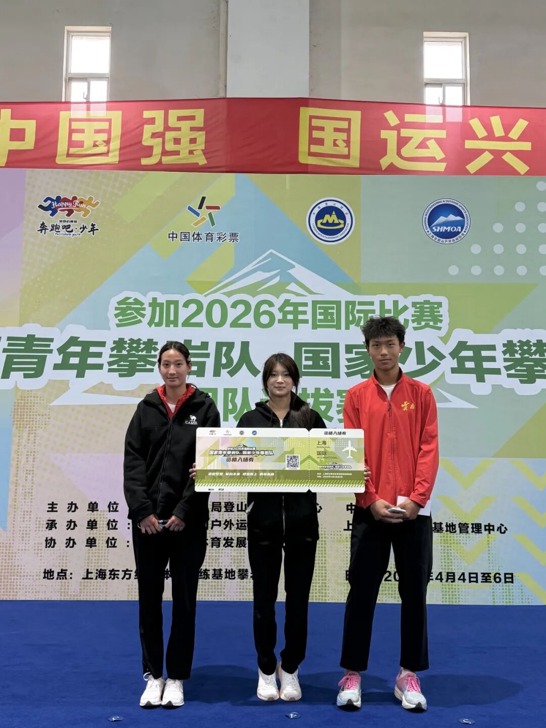 白玉美在女子U19组速度赛中荣获第三名,成功入选国家青年攀岩队,将有机会参加2026年世界青年攀岩锦标赛、亚洲青年攀岩锦标赛等国际赛事。张峰瑞在男子组比赛中取得第八名,也顺利入选。