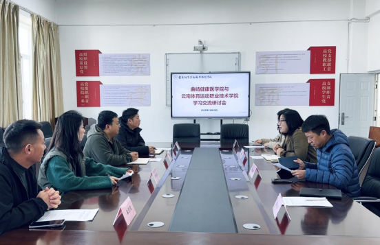 12月19日,曲靖健康医学院临床学院院长徐涛一行到校进行交流。运动健康学院党总支书记、院长、相关专业教师及辅导员参加交流座谈。