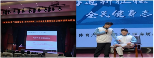 本次宣讲会特邀由北京体育大学运动医学与康复学院师生组成的宣讲团带来专业分享。运动医学教研室主任王艳教授结合多年临床经验与近十年运动处方研究,系统解读了科学运动与健康促进的前沿理念,深入讲解运动处方制定与实施、慢性病运动康复、运动损伤预防等核心内容。宣讲团成员朱飞龙老师、何琬琳老师及学生骨干通过实例分析与现场带教,生动展示了科学运动在训练与日常生活中的实践应用,内容兼具科学性、实用性与前瞻性,为参会人员带来了一场高质量的知识盛宴。