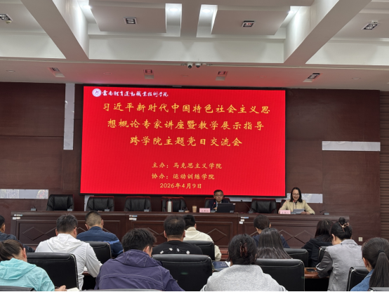 为深入学习贯彻习近平新时代中国特色社会主义思想,全面落实立德树人根本任务,推动党建工作与教育教学、思政育人深度融合,2026年4月9日,马克思主义学院与运动训练学院党总支在云帆楼第二报告厅联合开展习近平新时代中国特色社会主义思想概论专家讲座。活动由马克思主义学院副院长宋娟主持,马克思主义学院全体教师和运动训练学院全体党员共同参与。