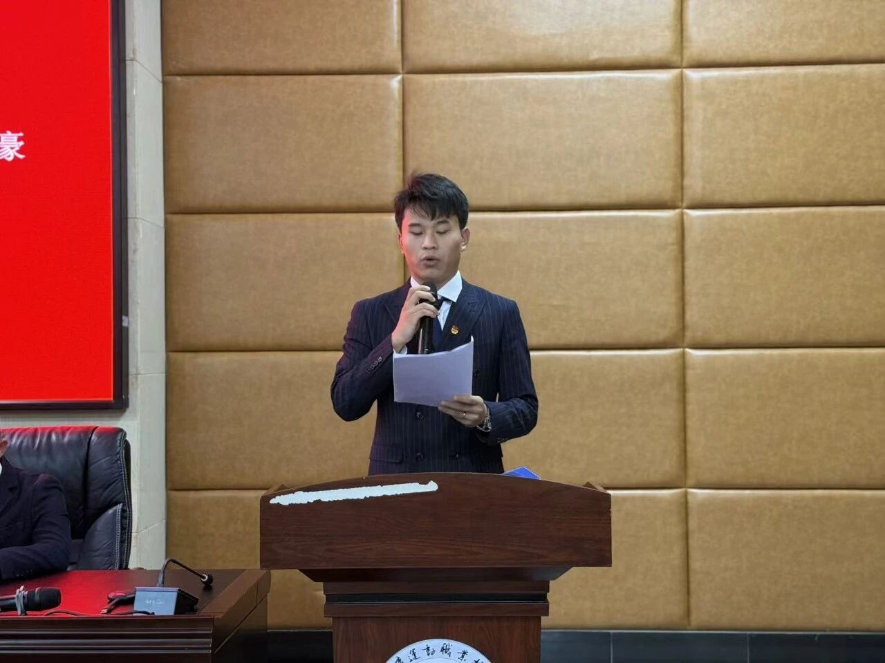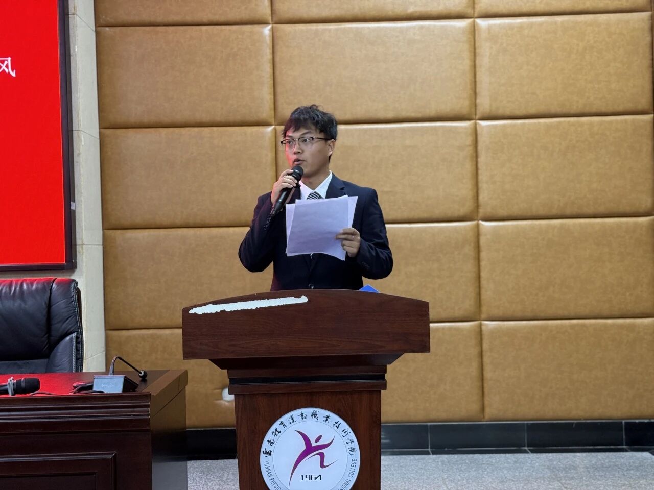 校学生会主席团成员张子豪同学解读《云南体育运动职业技术学院学生会章程》。解读过程中,围绕学生会组织架构、工作流程、纪律要求等核心内容展开,帮助干部们全面掌握规章制度细节。同时,还呼吁全体学生会干部,以章程为行动指南,严格加强自我管理,为学生会高效运转注入活力。