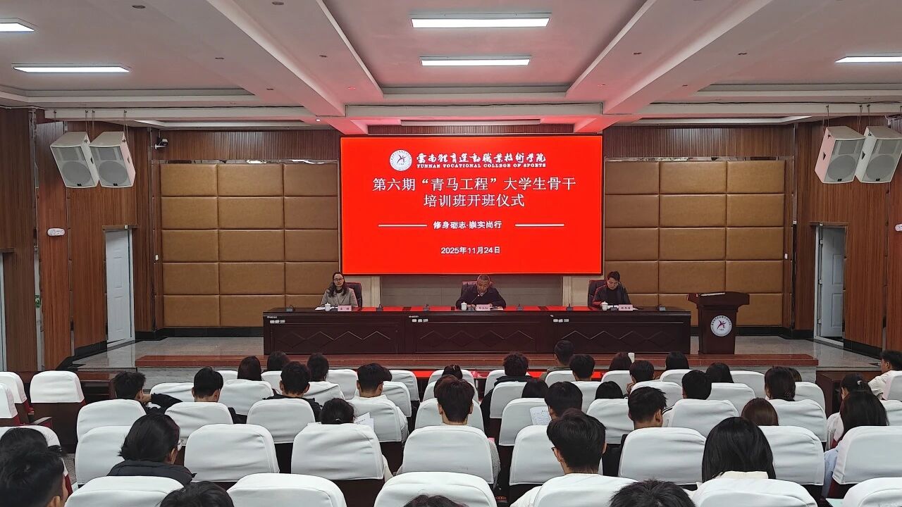云南体育运动职业技术学院团委已经连续六年开展“青马工程”培训班相关工作,并形成了以“理论武装 + 实践淬炼 + 体育特色”为核心的培养体系,涵盖专题讲座、红色研学、志愿服务、赛事实践四大模块。本期学员将系统学习贯彻习近平新时代中国特色社会主义思想、党的创新理论等核心内容,同时通过红色研学、基层体育支教等特色课程,全面提升参训学员的政治素养与专业实践能力。
