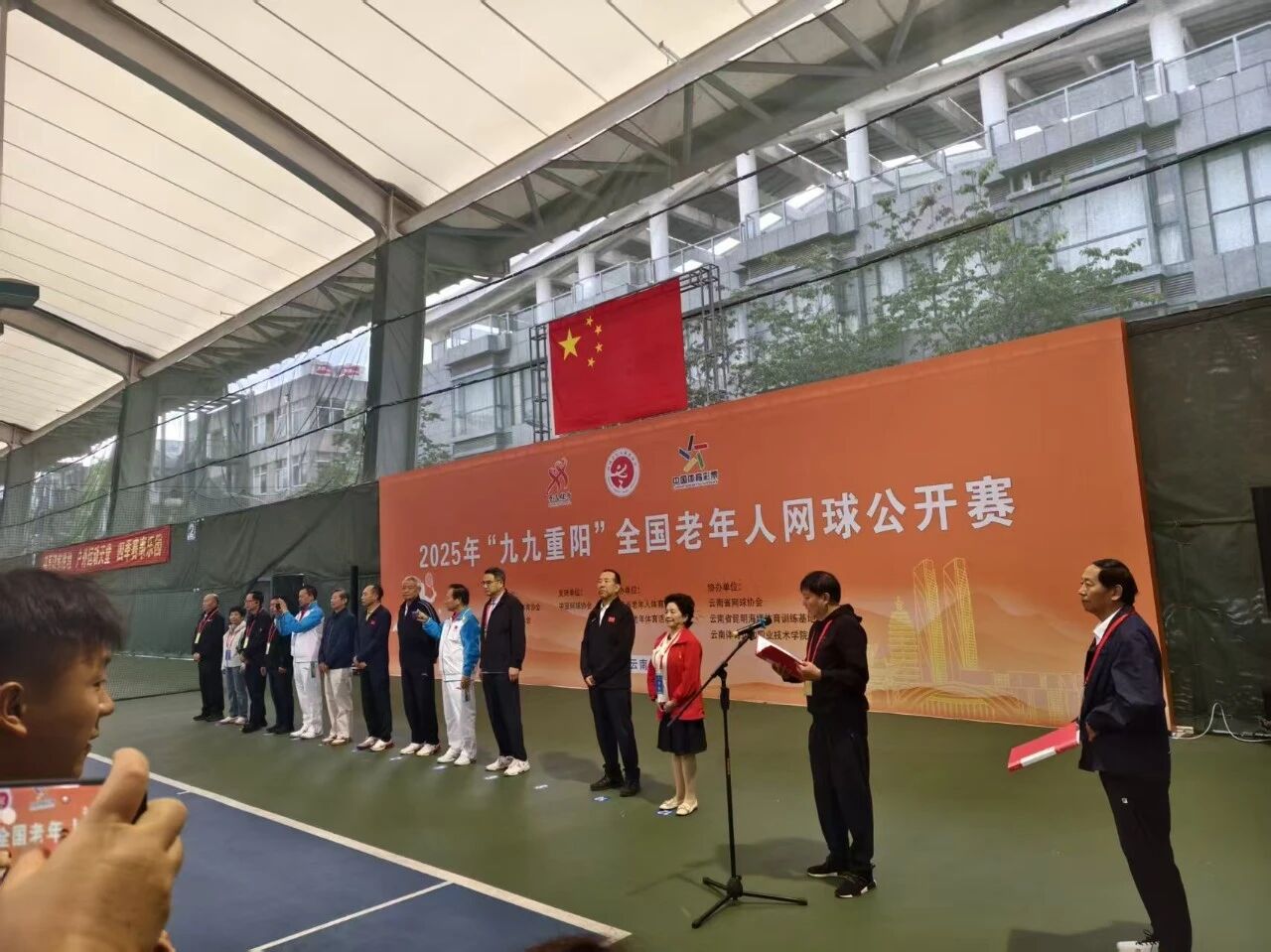 2025年10月9日至11日,2025年“九九重阳”全国老年人网球公开赛在海埂基地举行,为确保此次比赛顺利进行,校团委组织了25名志愿者协助完成网球公开赛的开幕工作。