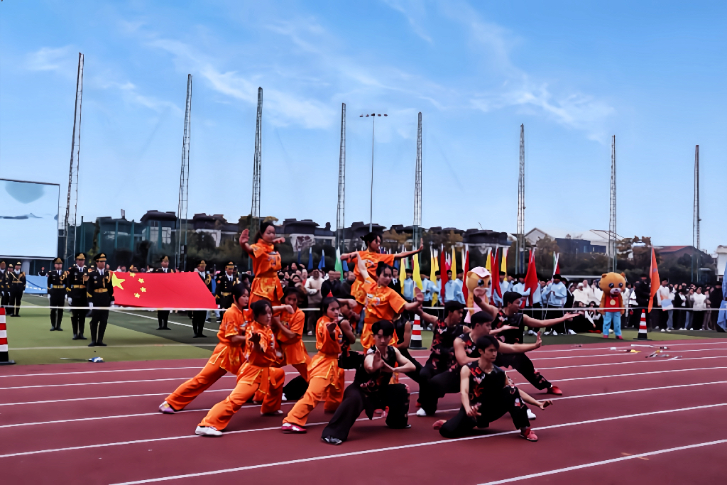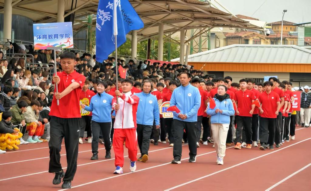 党党委书记缪军宣布本届运动会正式开幕。随后,体育教育学院学生带来了精彩纷呈的舞龙舞狮与武术表演,将现场气氛推向高潮,充分展现了学院弘扬传统体育文化的专业特色。