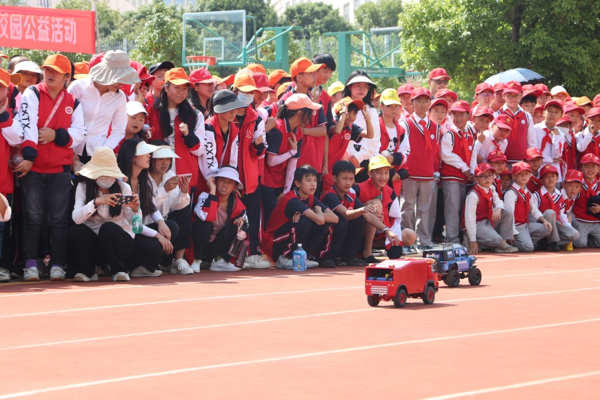接下来是激动人心的科技体育模型表演环节及航空、航海、车辆模型体验。同学们围绕在表演区四周,兴致勃勃观看模型表演。运动场上,爆发出同学们一阵阵的欢呼和喝彩声。