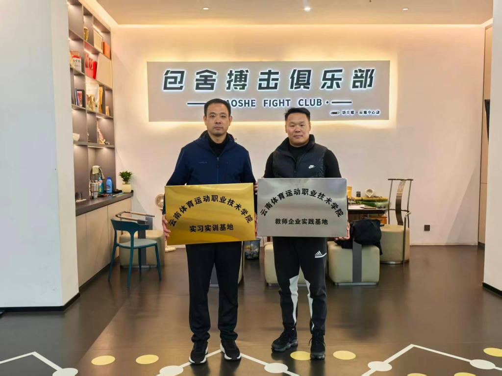 2025年11月13日,云南体育运动职业技术学院体育教育学院与昆明包舍搏击俱乐部正式签署实习实训合作协议。体育教育学院院长王井明率队实地考察俱乐部训练基地,双方围绕人才培养、就业岗位开发等议题展开深度交流,并共同为"实习实训基地"揭牌。